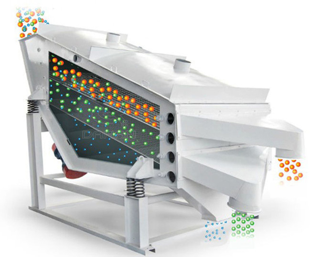 把底架的槽鋼固定在基礎(chǔ)上,使同側(cè)前后支承座高差一致,同一端(入料端或排料端)兩側(cè)的支承座板在同一水平面內(nèi),誤差均為2mm以內(nèi)。橡膠彈簧在出廠前已進(jìn)行靜剛度測試,應(yīng)選擇剛度相同(或相近)的彈簧配置在同一臺振動篩的不同支承位置。安裝時把橡膠彈簧置于下支承座上,使支承座上的凸臺進(jìn)入彈簧的內(nèi)孔,然后吊裝篩箱,一定要使橡膠彈簧的內(nèi)孔上下均與支承板的凸臺對中,將篩箱垂直下落,置于橡膠彈簧上,此時各支承點(diǎn)橡膠彈簧的高度應(yīng)一樣,誤差不得大于2mm。用戶需要調(diào)整篩面傾角時,可松開卡箍的固定螺栓,轉(zhuǎn)動上支承座,同時加高(或降低)后支承座,調(diào)整前后支承座的距離,使篩面傾角符合要求。篩機(jī)各部分聯(lián)接必須牢固可靠,所有螺栓不得有松動,各零部件不得有異常聲響,篩機(jī)上參振部分與周圍固定物之間的小間隙為30-50mm。篩機(jī)出廠時,雙振幅調(diào)為5―7mm,用戶可調(diào)整振動電機(jī)的兩偏心塊間的夾角,調(diào)整激振力的大小,進(jìn)而調(diào)整篩機(jī)振幅的大小。
