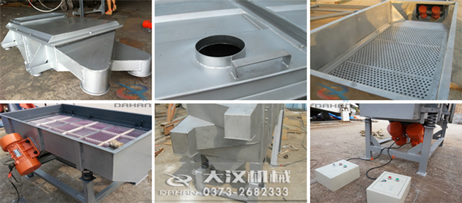 多層直線振動(dòng)篩粉機(jī)主要由篩箱、篩框、篩網(wǎng)、振動(dòng)電機(jī)、電機(jī)臺座、減振彈簧、支架等組成。